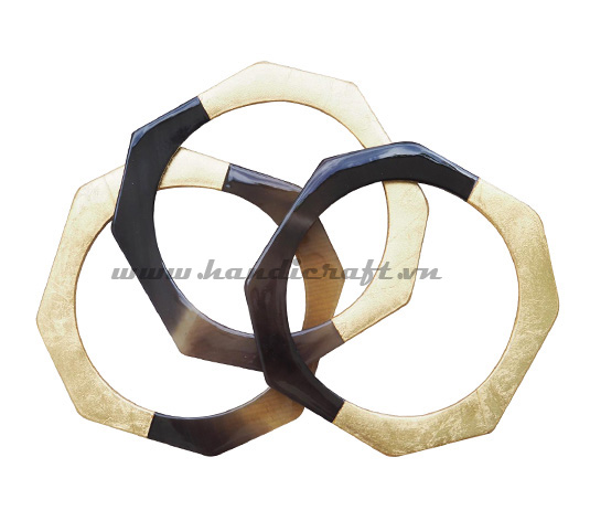 Set of 3 lacquered buffalo horn bracelets combined with gold plated very meticulously and carefully. New products for 2024