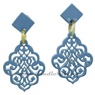 Buffalo horn earrings are CNC cut very sharp, combined with a very prominent Purple lacquer